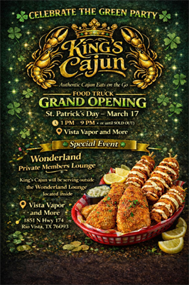 Grand opening of Kings Cajun food truck , Treat Me Right Cakery and wonderland hosted by vista vapor in Rio Vista Texas